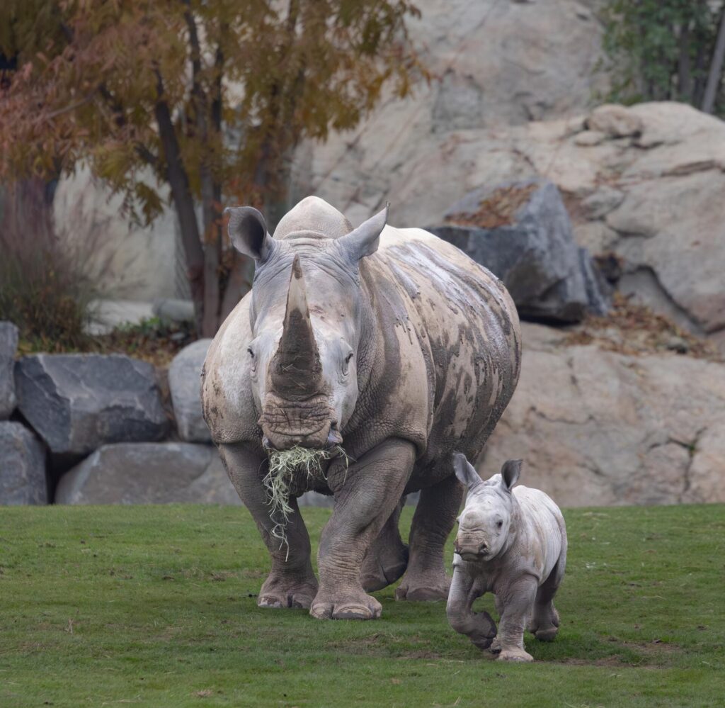 Fresno Chaffee Zoo has an exciting new addition to the herd. Southern white rhinoceros, Kayla, gave birth to a female calf on Friday, November 28th. Kayla and her calf, Eloise, spent their first few weeks together resting and bonding behind the scenes, closely monitored by the Zoo’s Animal Care and Veterinary teams.