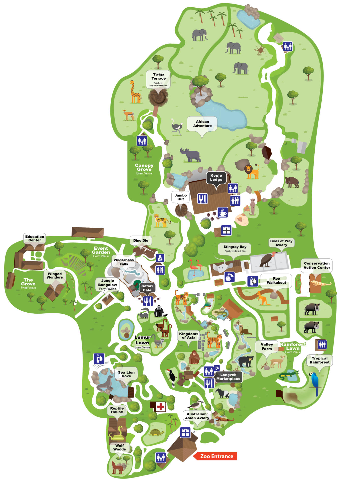 Before you arrive, make sure to check out our Plan Your Visit page for the most up-to-date information on what to expect. You can also download the Zoo’s map on the Homepage.
